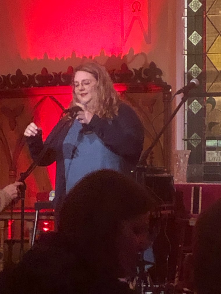 Le lendemain, je me retrouve à l’église anglicane Saint Bartholemew—déjà toute une histoire derrière ça—pour une soirée cabaret. Le format enchaîne musiciens, poètes, auteurs et comédiens. Ici le meilleur serait de laisser quelques photos vous offrir un aperçu, ainsi qu’un petit clip.